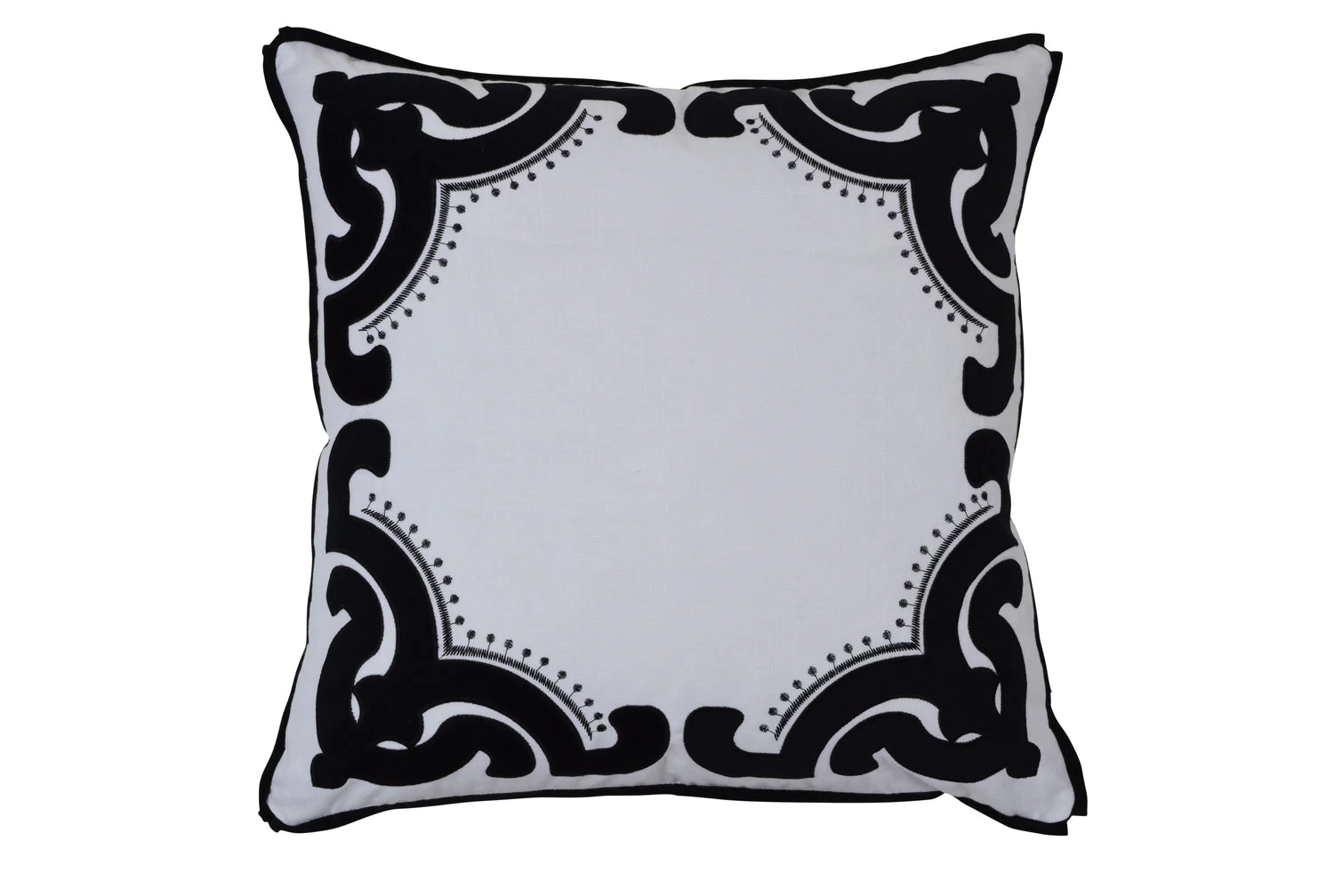 Capturing a contemporary European flavour, the Bronte Cushion features black velvet applique over white cotton. Mix and match with cushions in a grey or black palette to create the layered look on a bed or sofa.