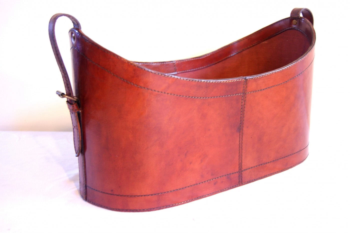 Soften the hard finishes of industrial furniture with the luxury of leather accessories such as our magazine basket available in tan. Modern sophistication combined with the the beauty of traditional craft.