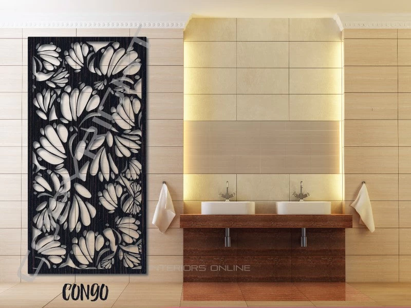 For a point of difference add interest to an interior or exterior wall with a contemporary laser cut wall panel. Panels can be attached to a wall or posts and for added ambiance, can be back lit. Select from a variety of finishes and colour match to your decor. Try rust for an outdoor courtyard wall to add contrast and a backdrop for contemporary plantings or powdercoat aluminium to suit an indoor palette.