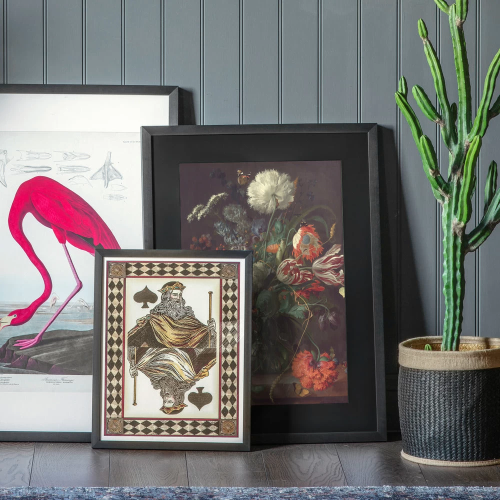 This moody floral bouquet will add a focal point to any interior, framed with a black mount in a black frame for the ultimate sophistication and effect.