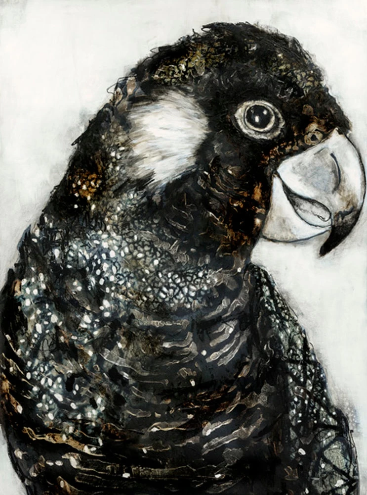 Trained in illustration and painting form an early age, Alissa Wright’s artwork is found in some of Australia’s finest homes and is often featured in interiors style publications. Like an Indigenous Dreamtime painting the features of the Desert Parrot reflect the rich dark tones of the night sky. Just as we stare into the stars we see patterns and shapes form.