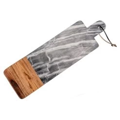 Sita Mango Wood And Marble Rectangular Narrow Chopping Board With Handle – White/Natural