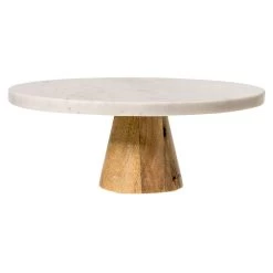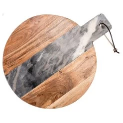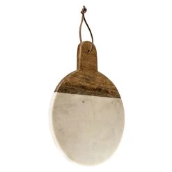 Sita Mango Wood And Marble Rectangular Wide Chopping Board With Handle – White/Natural