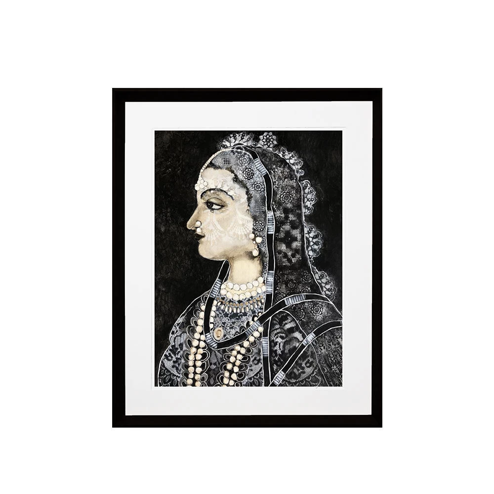 Trained in illustration and painting form an early age, Alissa Wright’s artwork is found in some of Australia’s finest homes and is often featured in interiors style publications. Travel through India inspired the portrait of Meerabai, a homage to the pious aura and soulful beauty found in its women, combined with the intricate design detail of fabric and architecture.