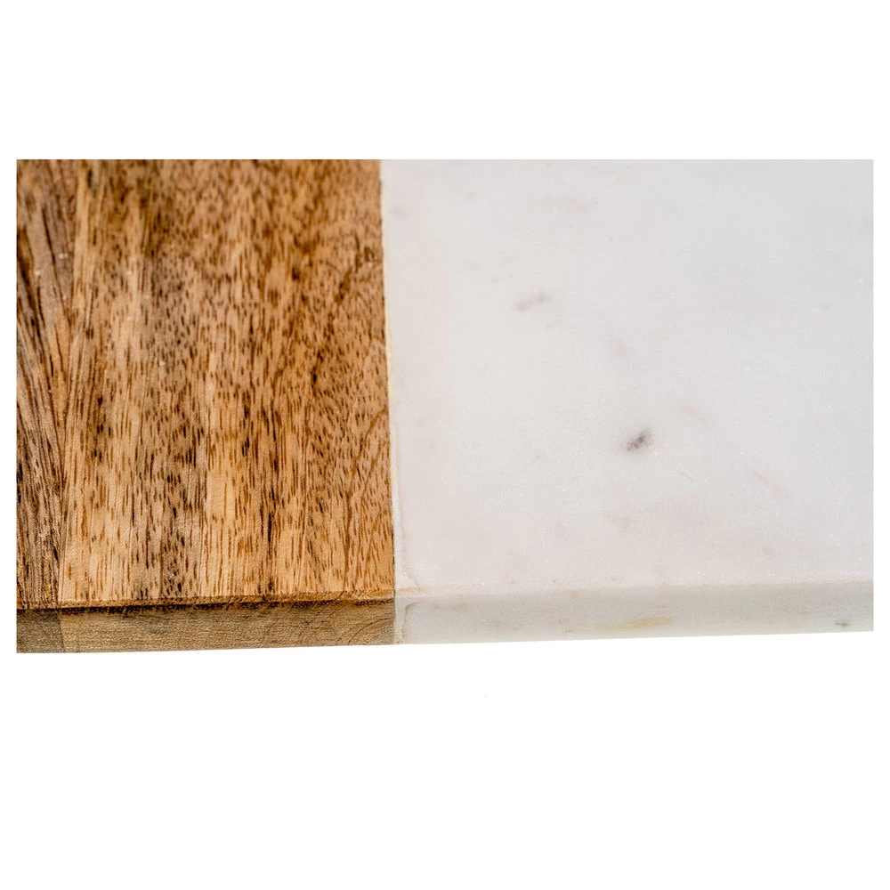 This rectangular wide chopping board with handle is made from mango wood and marble with a touch of natural and white color.