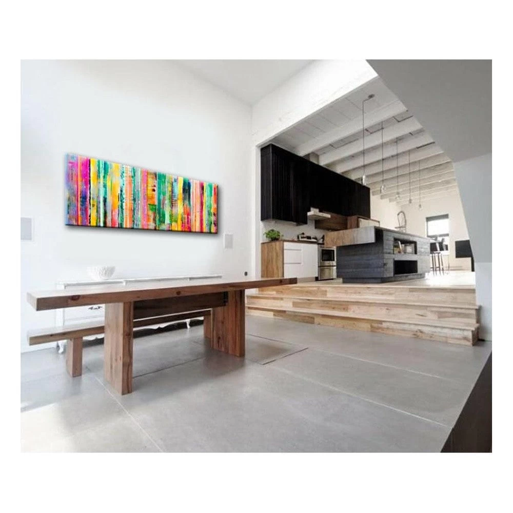 Instantly brighten your home with a refreshingly modern artwork in a vibrant palette. Whether styling a room from scratch or completing a space, this piece is a striking way to develop or unify a colour palette. Please allow 4-6 weeks for dispatch. Please note that this is a hand painted canvas and slight colour variations may occur.