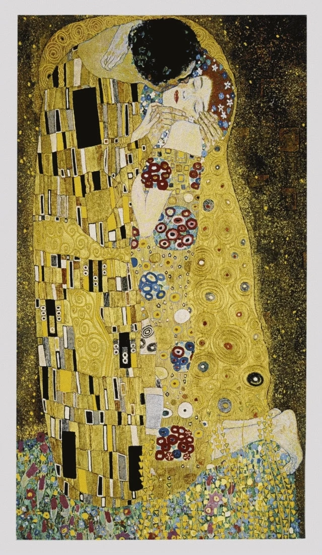 Klimdts’ most famous painting, The Kiss (1907-08) has been faithfully reproduced in a tapestry, capturing all the colour, pattern and emotion of his original artwork. Complement with elegant French Art Nouveau or Arts and Crafts movement furniture and accessories, using black as a base colour and gold for accents.