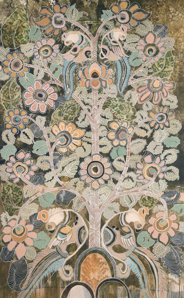 Trained in illustration and painting form an early age, Alissa Wright’s artwork is found in some of Australia’s finest homes and is often featured in interiors style publications. Tree of Life explores our journey through life and the paths we take which sometimes form patterns or bends and turns and always we hope, the ability to grow and thrive. The tree is a symbol of our deep connection to the world around us and our family, signifying positive energy, good health and a bright future.