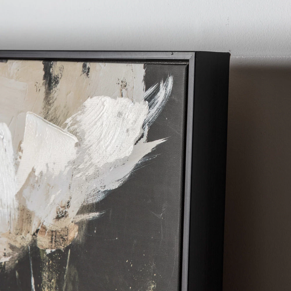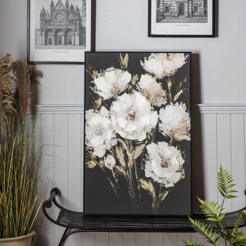This beautiful flowers on this Painted Peonies Framed Canvas pop against the black background and frame, the perfect piece to breath life into any room of the home.