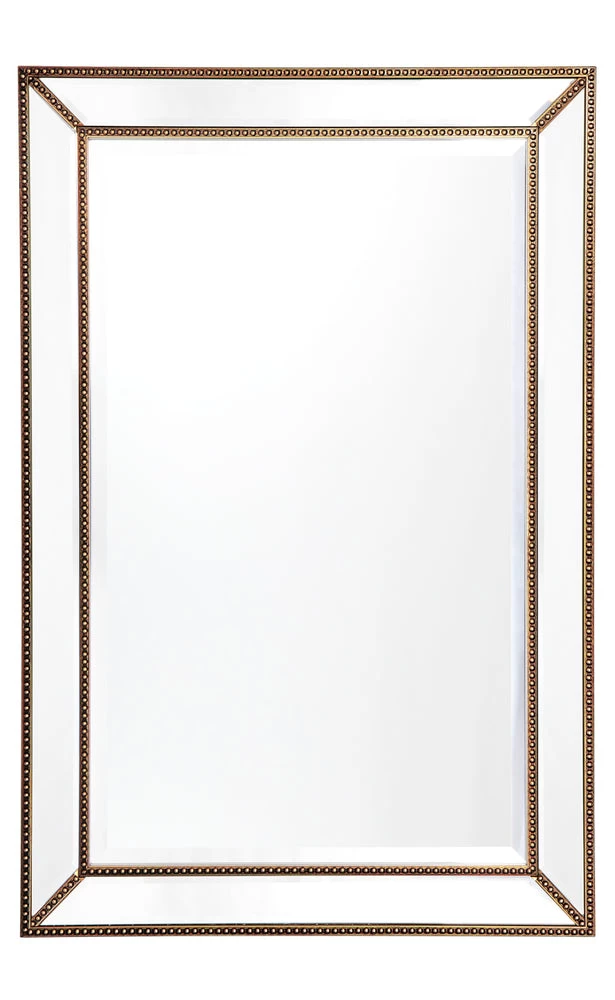 A robust, yet elegant mirror, the Zeta has a wide bevelled frame, edged in antique gold on a beaded trim. Its simplicity makes it suited to a variety of applications.