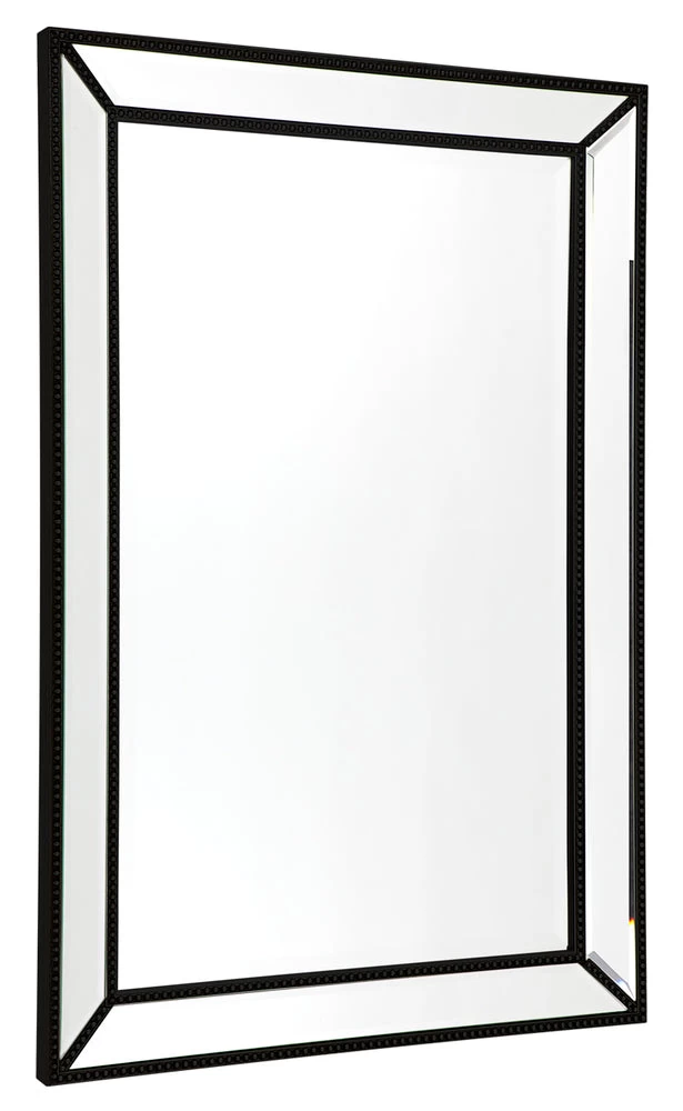 A robust, yet elegant mirror, the Zeta has a wide bevelled frame, edged in satin black on a beaded trim. Its simplicity makes it suited to a variety of applications.