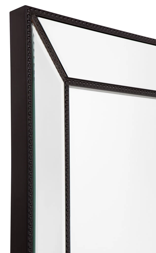 A robust, yet elegant mirror, the Zeta has a wide bevelled frame, edged with satin black on a beaded trim.